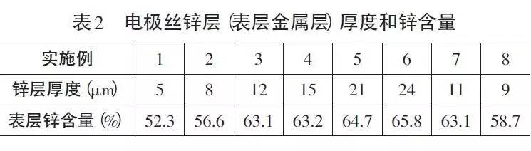 (5)電沉積鋅:再按照表2進(jìn)行常規(guī)的電沉積工藝加工,可獲得具有表層金屬層的粗坯。